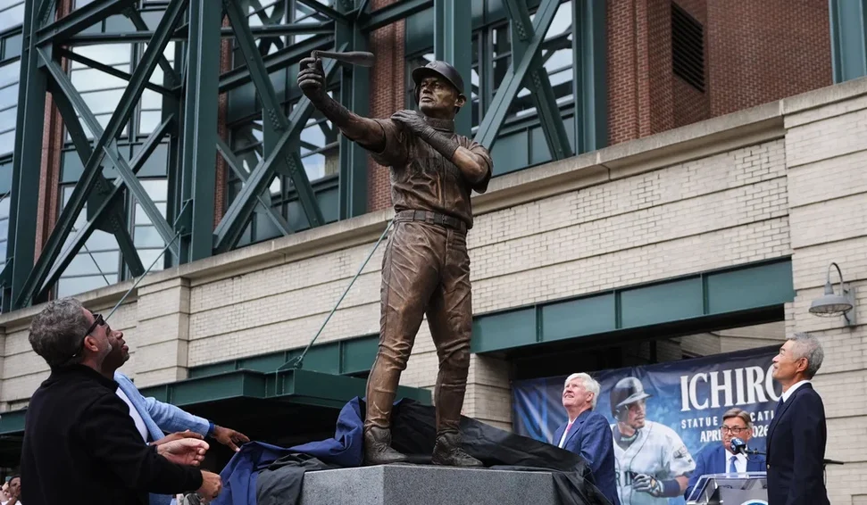 As radialista Rick Rizzs declarou “nós vamos contar para baixo a partir de 51!” — um aceno para número da camisa da Suzuki, que foi aposentada pelo the Mariners de Seattle — a cortina que cobria a estátua de bronze foi puxada para baixo, e assim, também, foi o bastão.