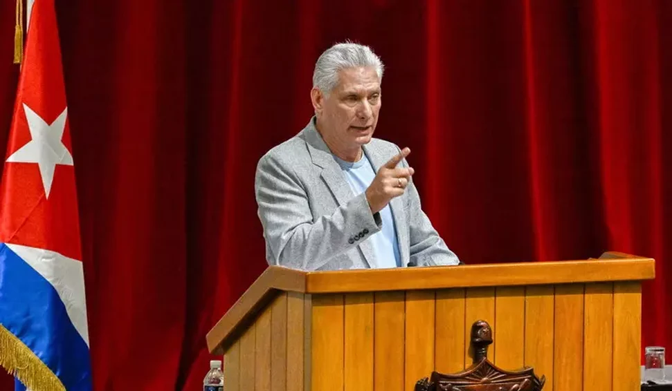 Em seguida, acrescentou com determinação: "Em Cuba, as pessoas em posições de liderança não são eleitas pelo governo norte-americano. Somos um Estado livre e soberano. Desfrutamos de autodeterminação e independência e não estamos sujeitos aos desígnios dos Estados Unidos. É o povo cubano que decide se estou à altura da tarefa, não os EUA". Logo depois, ele concluiu sucintamente: "Renúncia não faz parte do nosso vocabulário". Em resumo, foi uma forma clara de encerrar o assunto e rejeitar a ideia de um "modelo venezuelano" — "um chavismo sem Maduro" — para gerir a transição em Cuba.
