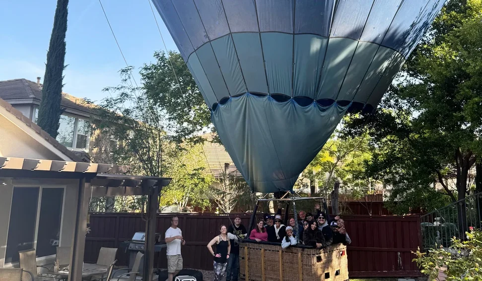 Podemos dar uma passada aí? Um balão de ar quente com 13 pessoas a bordo fez um pouso de emergência no quintal de uma casa na Califórnia