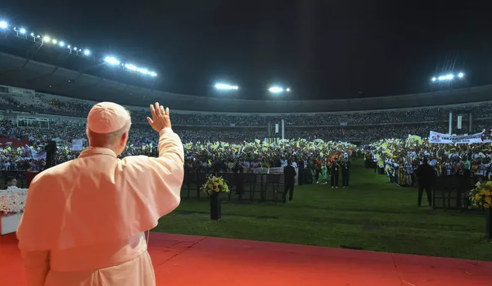 Em viagem ao continente africano, o papa Leão XIV encontrou-se nesta quarta-feira (22) com jovens e famílias no Estádio Bata, na Guiné Equatorial, e pediu aos fiéis que contribuam para a construção de um mundo melhor.