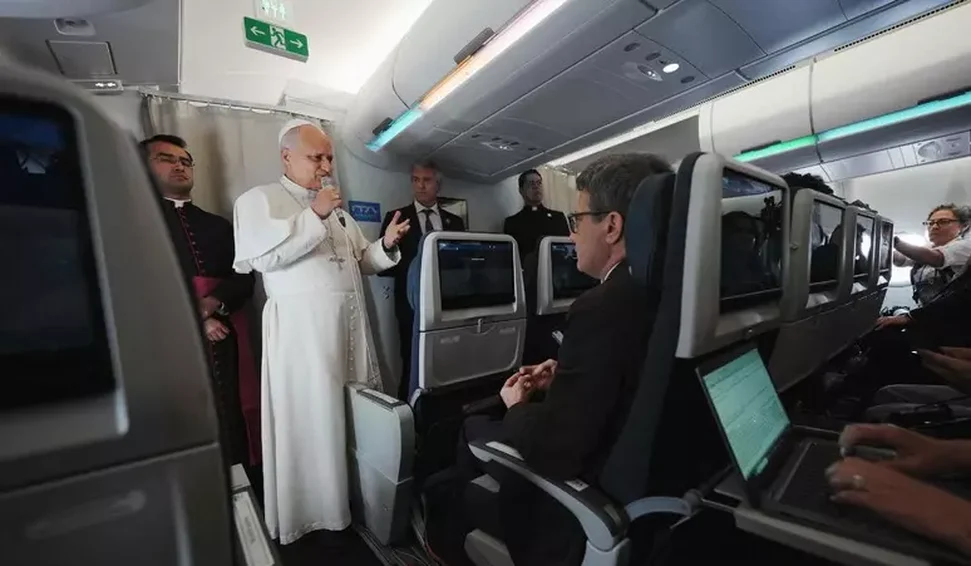 O papa Leão XIV afirmou nesta quinta-feira (23), em seu voo de volta a Roma após 11 dias na África, que é contra bênçãos formais a casais homoafetivos, prática que tem provocado consternação nas franjas mais conservadoras do clero.