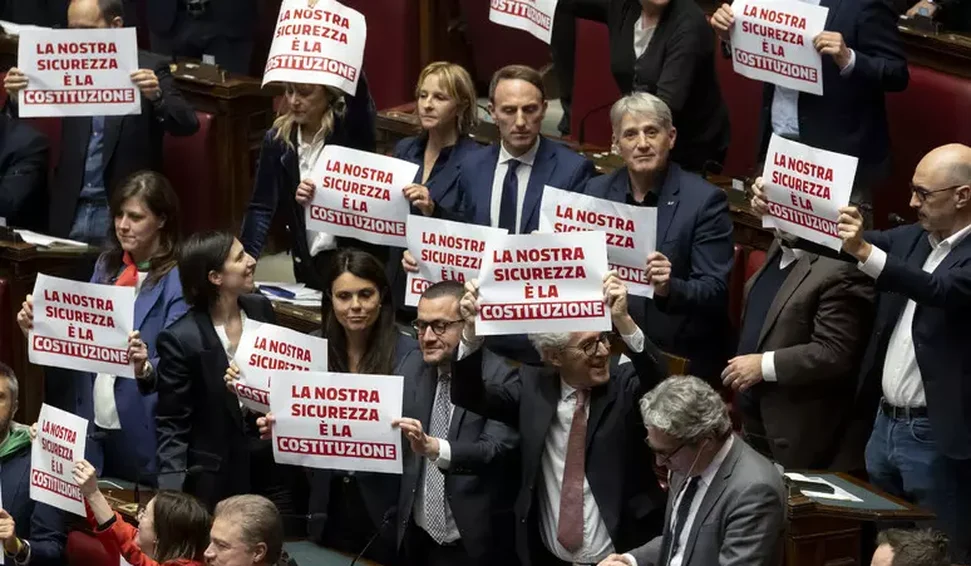 O decreto de segurança, que expiraria no sábado (25) caso não fosse aprovado, foi promulgado enquanto membros da oposição cantavam o hino da resistência da Segunda Guerra Mundial, "Bella Ciao", e exibiam cartazes com os dizeres "Nossa segurança é a Constituição", além de carregarem papoulas em memória do Dia da Libertação, a ser celebrado neste 25 de abril, data em que a Itália comemora sua libertação pelos Aliados na Segunda Guerra.