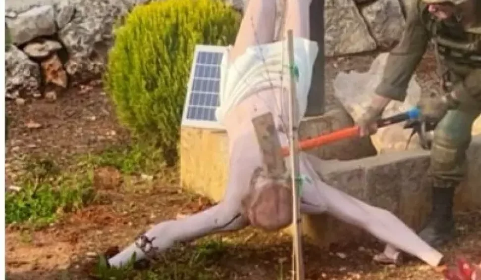 No final de semana, uma foto amplamente divulgada nas redes sociais gerou polêmica ao mostrar um soldado israelense atingindo com uma marreta a cabeça da estátua de Jesus, que havia caído.
