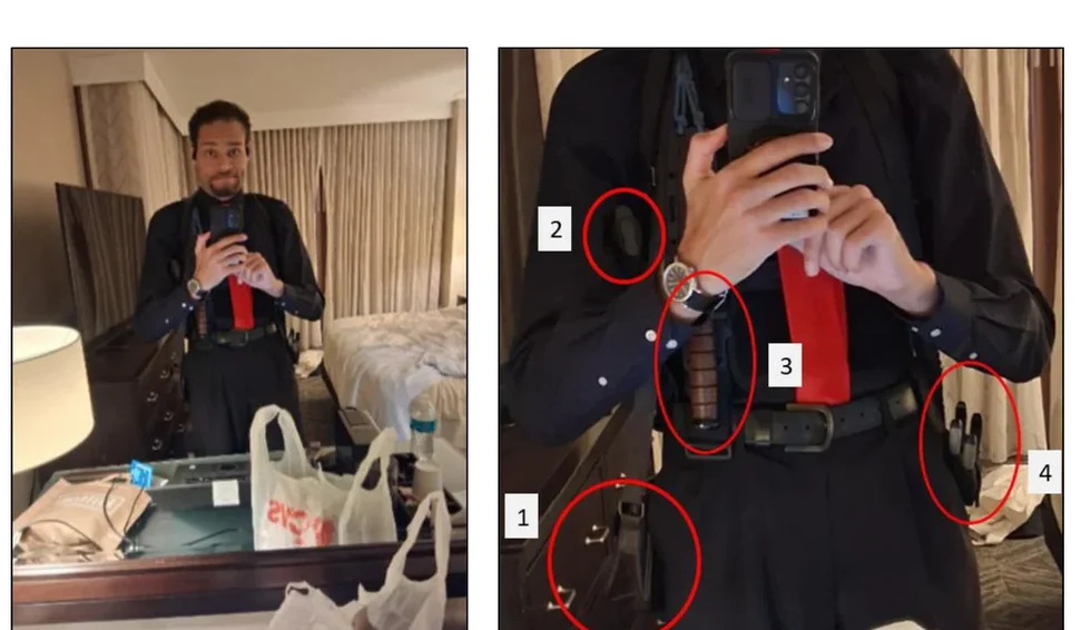 O homem acusado de tentar invadir o jantar da Associação de Correspondentes da Casa Branca e matar o presidente Donald Trump tirou uma foto de si mesmo em seu quarto de hotel minutos antes, equipado com uma bolsa de munição, um coldre de ombro e uma faca embainhada, disseram as autoridades nesta quarta-feira em um novo documento judicial.