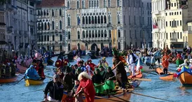 Desfile de 140 barcos marca início do Carnaval de Veneza