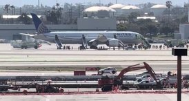 Passageiros fogem de avião no Aeroporto Internacional de Los Angeles após motor pegar fogo