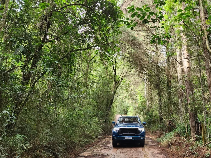 Entre Guarulhos e Piracaia, percorri 82 quilômetros pela SP-036, passando por Nazaré Paulista. O trajeto asfaltado permitiu avaliar estabilidade em curvas e retomadas. A picape manteve comportamento previsível, inclusive em trechos de variação de altitude. Após parada para almoço, segui em direção a Extrema, com passagem por Joanópolis.