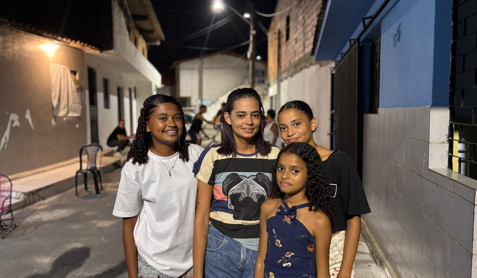 Hanna é operadora de caixa e estuda administração de empresas. Como mãe solo, se preocupa com o bem-estar das filhas, principalmente quando precisa sair para trabalhar. “Antes, eu ficava muito apreensiva, porque elas ficam sozinhas em casa. Era um ponto muito escuro. Qualquer coisa poderia acontecer e ninguém ia ver. Hoje, com as luzes acesas, me sinto mais segura. A iluminação traz uma tranquilidade que a gente nunca teve e agora, com essa nova estrutura, a gente pode andar à noite tranquila, sem receio de passar pelos becos. Mudou tudo pra melhor", completa.