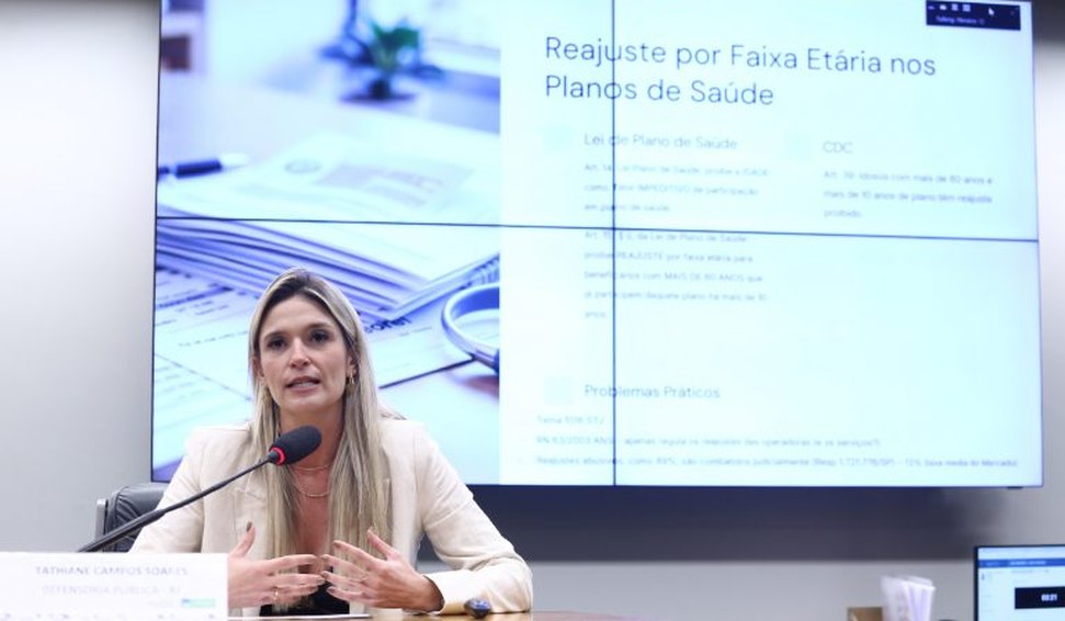 Ao debater denúncias de abusos dos planos de saúde contra idosos na Câmara dos Deputados, a subcoordenadora do Núcleo de Defesa do Consumidor da Defensoria Pública do Rio de Janeiro, Tathiane Campos Soares, defendeu o aprimoramento da legislação para aumentar a proteção dos maiores de 60 anos. Segundo a defensora pública, a principal denúncia que chega ao órgão diz respeito a reajustes abusivos.