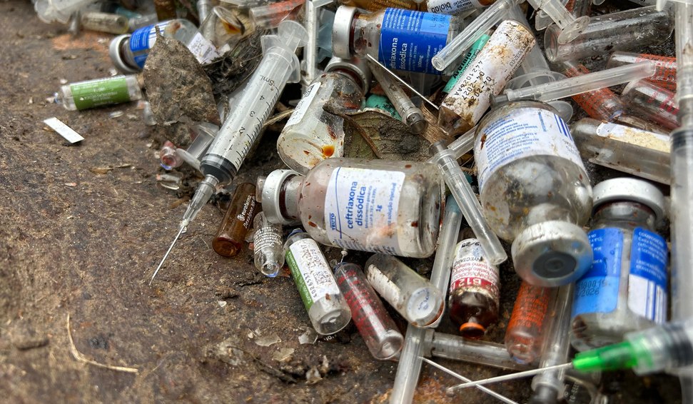 A Vigilância Sanitária de Maceió (Visa), em parceria com a Delegacia de Crimes Ambientais, identificou, nesta terça-feira (27), no Tabuleiro do Martins, o descarte irregular de grande quantidade de resíduos de serviços de saúde, tais como seringas, ampolas, agulhas e medicamentos vencidos.