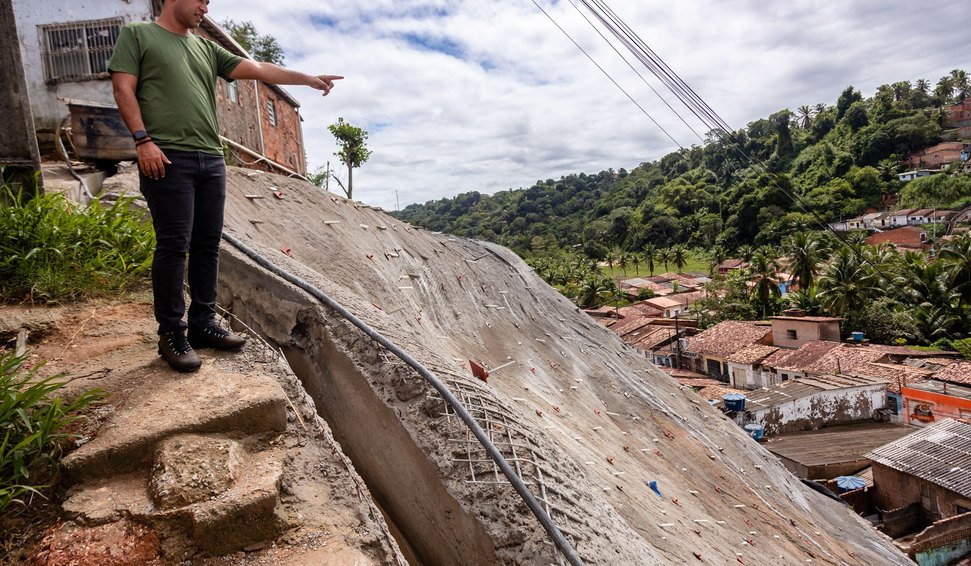 Dona de uma mercearia e moradora do local há 20 anos, Estelita Maria Chavin, 71 anos, conta que conviver esse tempo todo com deslizamentos e outros riscos com a encosta era manter-se em alerta e sobressaltada. Mas, mesmo sem estar 100% concluída, a obra de estabilização e contenção do solo leva mais tranquilidade aos moradores de Chã de Bebedouro.