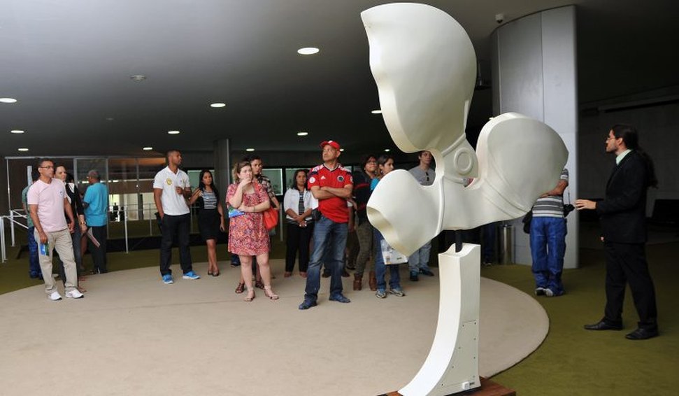 Os visitantes também recebem informações sobre as obras de arte que fazem parte do acervo do Congresso, criadas por artistas como Athos Bulcão, Alfredo Ceschiatti, Di Cavalcanti, Marianne Peretti e Burle Max.