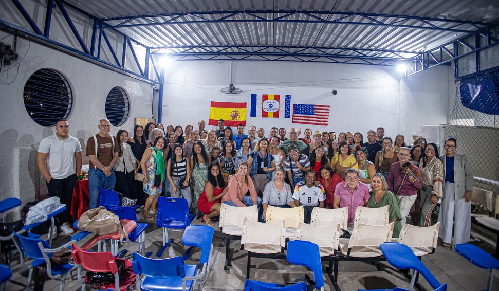Na plateia, uma ex-aluna de peso, Camila Lima, de 19 anos. Ela concluiu o curso de inglês no polo Jacintinho, na Escola Municipal Henrique Equelman, e hoje é uma referência do Núcleo, contando com uma participação no G-20, que ocorreu em Maceió em 2024.