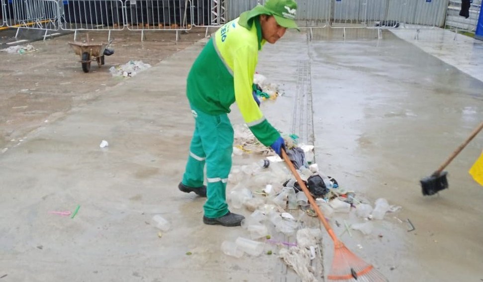 O trabalho envolve mais de 100 garis que, após o fim de cada dia de atrações, fazem a higienização, com a utilização de um caminhão pipa e a coleta de resíduos orgânicos com a ajuda de um caminhão coletor, deixando a área pronta para o próximo dia de apresentações.