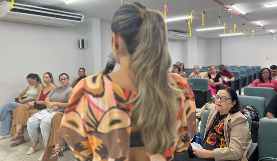 No momento, representantes das áreas especializadas palestraram sobre seus fluxos. Ederise Lima, coordenadora geral de Urgência e Emergência e Suzangela Mendonça, coordenadora de Saúde da Mulher.