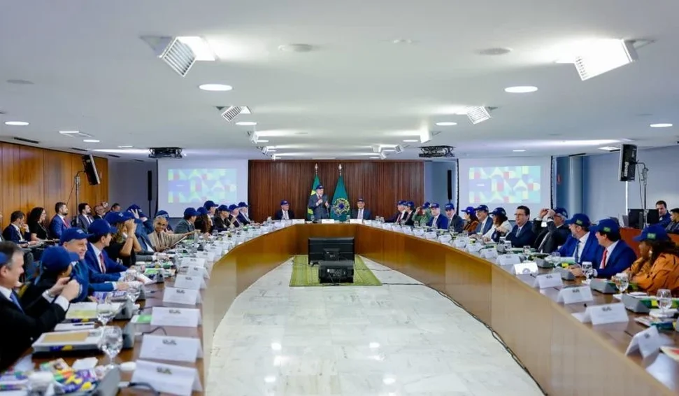 O presidente Luiz Inácio Lula da Silva (PT) usou o boné no início da reunião e ministros acompanharam o chefe do Executivo. Ao fim do trecho que foi televisionado, depois do discurso do ministro da Casa Civil, Rui Costa, eles já não vestiam mais o boné.