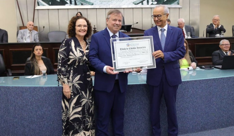 Por iniciativa do deputado Doutor Wanderley (MDB), a Assembleia Legislativa de Alagoas realizou, nesta sexta-feira, 24, uma sessão solene para entregar o Título de Cidadão Honorário do Estado ao procurador de Justiça Walber José Valente de Lima, em reconhecimento aos relevantes serviços prestados ao Estado ao longo de sua carreira no Ministério Público.