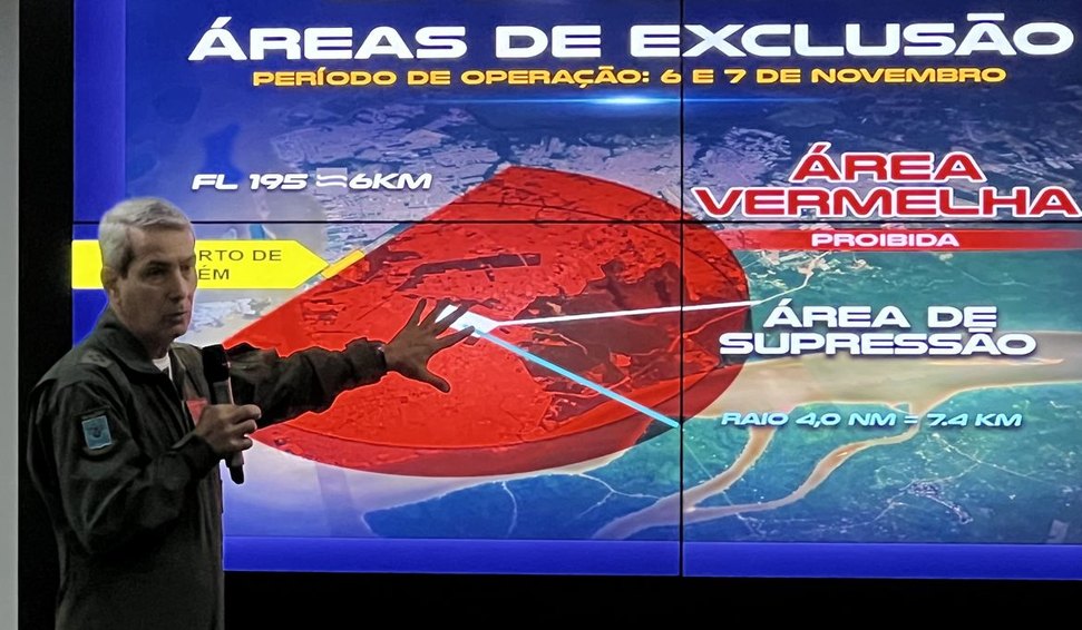 A Força Aérea Brasileira (FAB) vai utilizar aeronaves de caça e mísseis para garantir a segurança e a soberania do espaço aéreo durante a Cúpula dos Líderes que será realizada nos dias 6 e 7 de novembro, em Belém (PA). O evento ocorre no âmbito da 30ª Conferência das Nações Unidas sobre Mudanças Climáticas (COP30). Também serão adotadas áreas de exclusão, com circulação restrita de aeronaves.