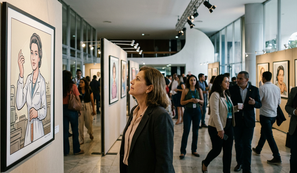 Exposição 'Donas da Rua' destaca 16 mulheres marcantes da história brasileira com traços da Turma da Mônica, no Senado.