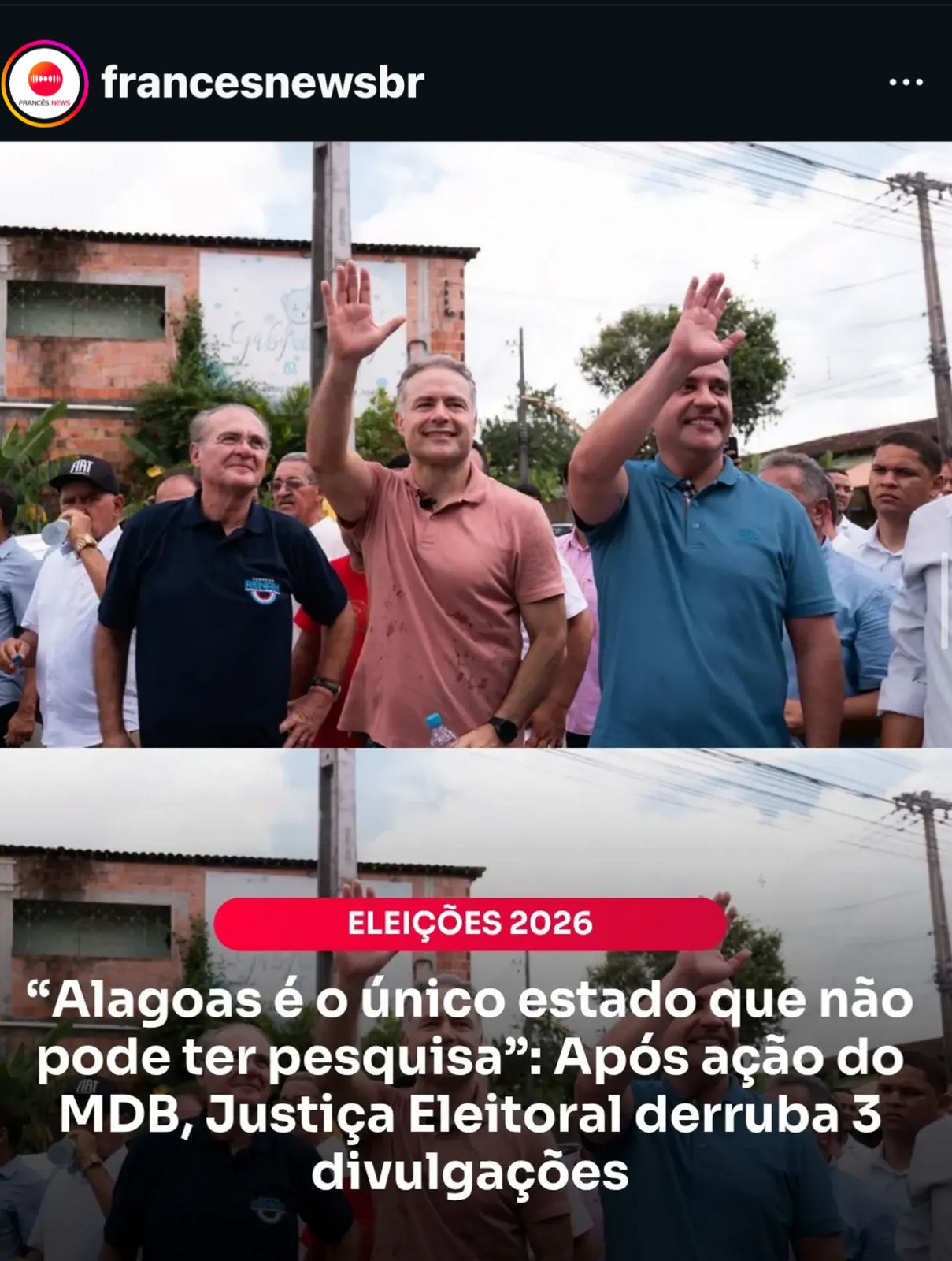 As postagens também fazem referência a episódio envolvendo o governador Paulo Dantas, ao citar a divulgação de uma pesquisa sem registro na Justiça Eleitoral. O caso resultou em decisão que determinou a retirada do conteúdo, após representação do Partido da Social Democracia Brasileira (PSDB), com previsão de multa em caso de descumprimento.