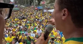 Durante ato na Avenida Paulista, senador diz que Jair Bolsonaro, atualmente preso, retornará à Presidência em janeiro de 2027.