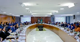 Lula e ministros usam boné 'O Brasil é dos brasileiros' em reunião