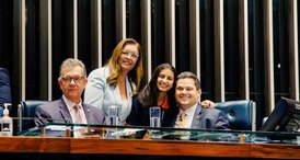 Senadora Dra. Eudócia leva aluna vencedora do concurso Jovem Senador para conhecer o presidente do Senado, senador Davi Alcolumbre