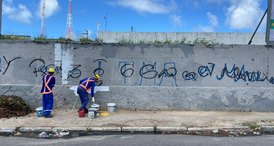 Vândalos picham ponto revitalizado pela Alurb no Jacintinho