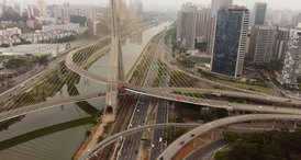 Bandeira da Palestina de 70 metros é estendida por ativistas na Ponte Estaiada, em SP