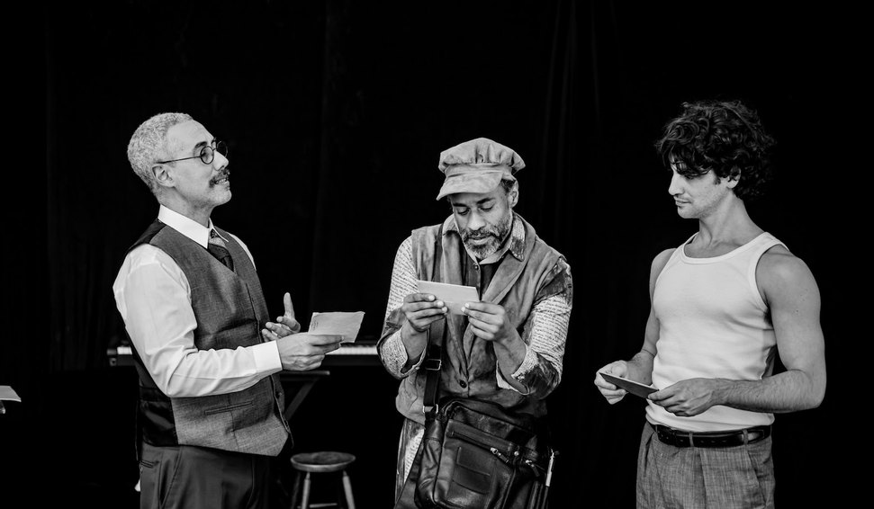 No palco, os atores Rodrigo Mercadante, Caio Horowicz e Fábio Neppo dão vida aos personagens Mário de Andrade, Fernando Sabino e ao carteiro, figura central da narrativa. É por meio deste mensageiro que a história se desenrola — conduzindo o público pelas trocas de correspondências entre dois dos mais emblemáticos escritores nacionais do século XX.