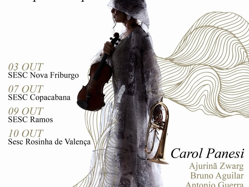 Carol Panesi (violino, rabeca, piano e flugel), também responsável pela direção musical e arranjos, desfila criatividade, improvisação, brasilidade e virtuosismo acompanhada de Ajurinã Zwarg (bateria), Bruno Aguilar (contrabaixo) e Antonio Guerra (piano e sanfona).