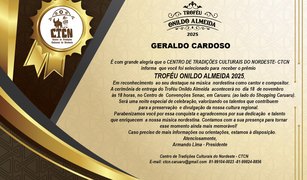 De acordo com a organização, o troféu é um tributo à contribuição de artistas que, como Geraldo Cardoso, utilizam sua arte para difundir a identidade cultural nordestina. “Parabenizamos você por essa conquista e agradecemos por sua dedicação e talento que enriquecem a nossa música nordestina”, destacou o presidente do CTCN, Armando Lima, em comunicado oficial.