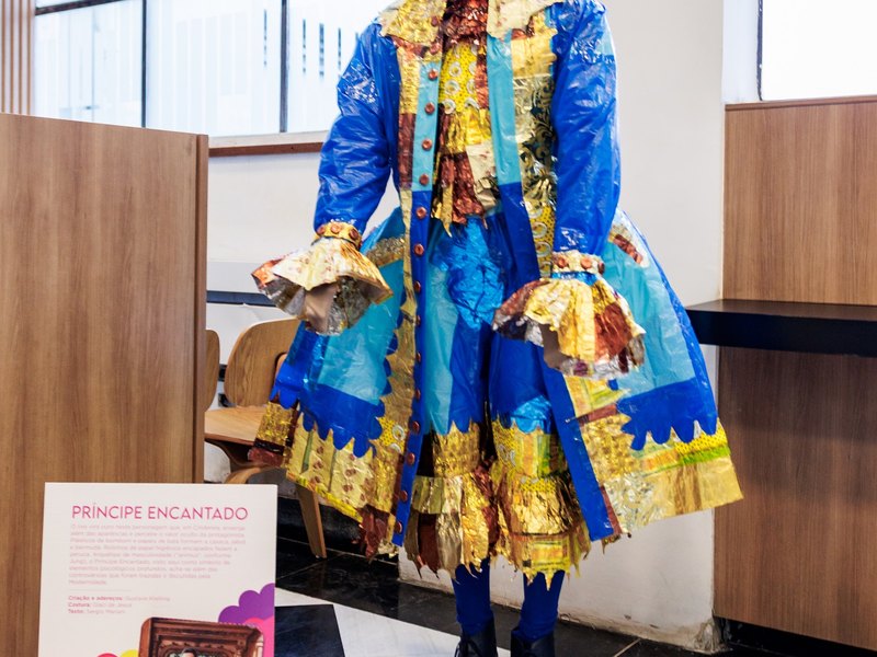 Com foco na sustentabilidade, os figurinos foram desenhados em croquis e confeccionados a partir de materiais de reuso (reciclados), como mangueiras de jardim, sacos de lixo, palha, sacos de café, refugos de couro e tecidos, caixas de remédios, embalagens de alimentos, rolos de papel higiênico, garrafas PET e plásticos diversos. A exposição convida o público de todas as idades a revisitar histórias conhecidas com um novo olhar, que une impacto visual, criatividade e reflexão sobre o consumo e o meio ambiente. Após dezenas de trabalhos entre figurinos para musicais, performances, óperas e exposições, Gustavo tem em sua bagagem um repertório único e tem como foco arriscar em dialogar com a indumentária através de materiais alternativos de reuso. “Meu compromisso estético é para que o público entre no universo fantástico das personagens. Os visitantes podem esperar um momento de encantamento e descoberta de inúmeras possibilidades dos materiais, além de encontrarem alguns dos personagens favoritos de seus contos de fadas”, revela o artista.