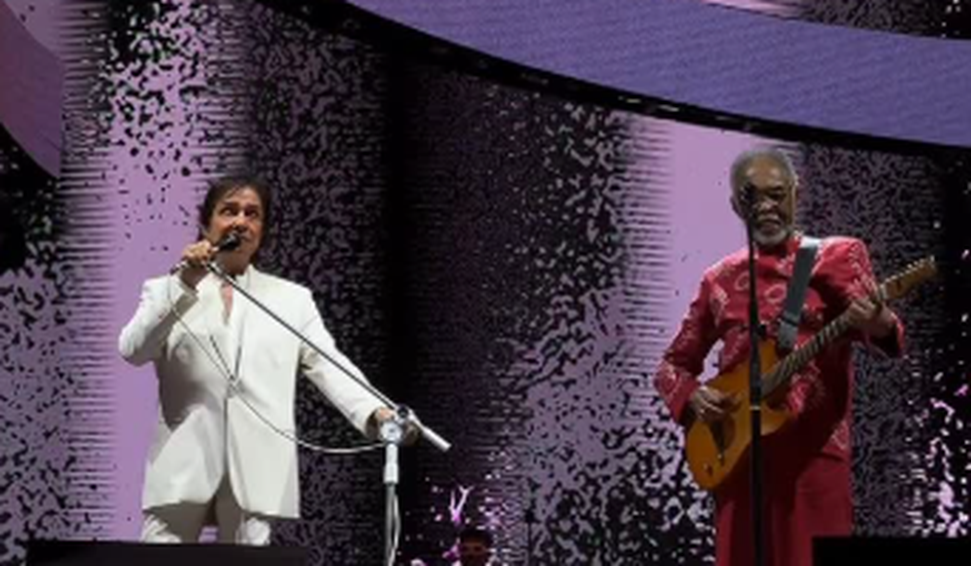 Gilberto Gil recebe Roberto Carlos no palco em despedida de SP
