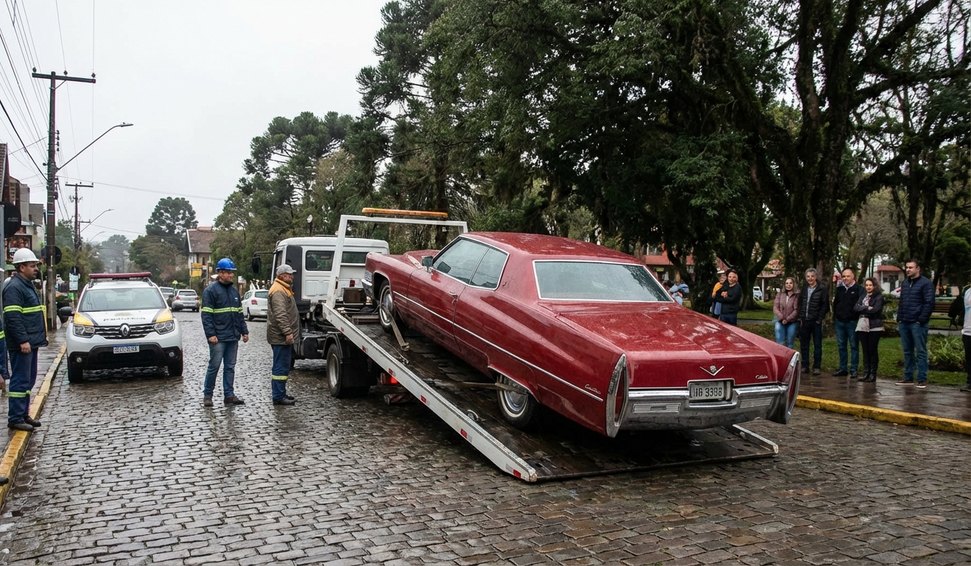 O cantor Roberto Carlos passou por um susto na madrugada deste domingo, 14, em Gramado, na Serra Gaúcha. Enquanto dirigia seu clássico Cadillac vermelho dos anos 1960, o artista perdeu o controle do veículo durante a gravação do videoclipe de abertura do especial de fim de ano da TV Globo. Ao tentar subir uma ladeira, o carro desceu de ré, colidindo com outros três veículos e uma árvore.