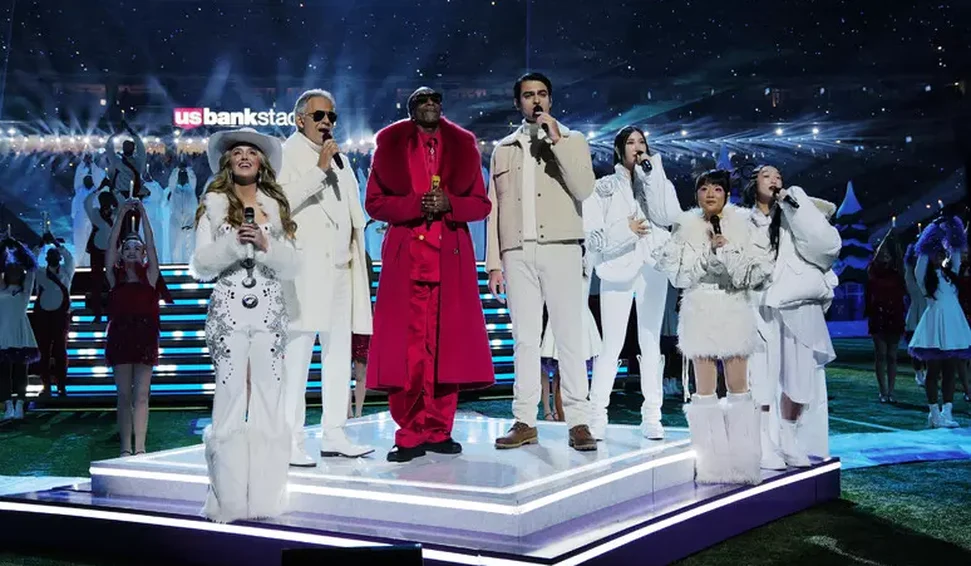Os dois cantores fizeram uma emocionante apresentação de "White Christmas" no espetáculo liderado pela lenda do rap americano Snoop Dogg, ajudando a confirmar a tradição do "Super Bowl de meio de temporada", iniciada com sucesso em 2024, quando o show coube à diva pop Beyoncé.