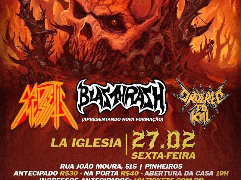 Ingressos: https://101tickets.com.br/events/details/Deathraiser---Sadistic-Messiah---Blasthrash-e-Orde