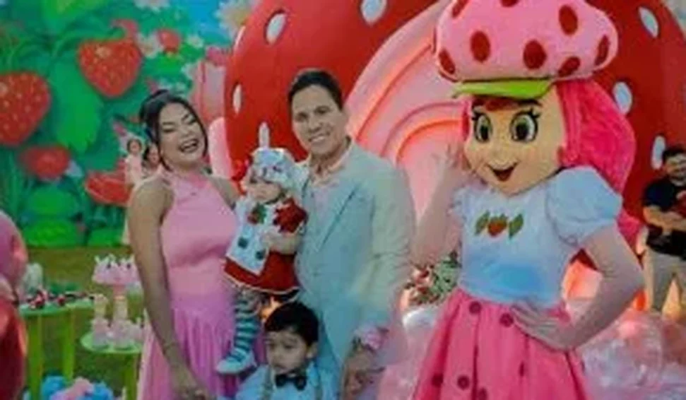 Influenciadora Rayssa Buq celebra 1º ano de sua filha Olívia, com festa temática da Moranguinho