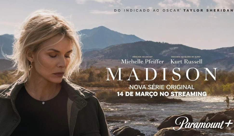 SÃO PAULO, FEVEREIRO DE 2026 - O Paramount+ acaba de divulgar o trailer e pôster oficial de MADISON, série original que se aprofunda em uma história de amor que é contada por meio de um drama familiar íntimo sobre resiliência e transformação. Criada pelo indicado ao Oscar® Taylor Sheridan, a série é estrelada pela também indicada ao Oscar® Michelle Pfeiffer e pelo indicado ao Globo de Ouro® Kurt Russell.