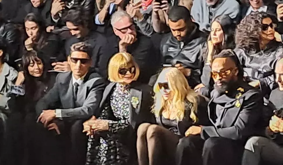 A diva do pop sentou-se na primeira fila para assistir ao desfile, ao lado de Anna Wintour, lendária ex-editora da Vogue americana, em um momento que reuniu duas das figuras mais influentes da moda mundial.