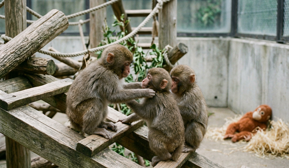 Punch ainda dorme com o brinquedo todas as noites, mas o próximo passo, segundo Mizushina, é vê-lo dormir junto com outros macacos, aninhado em grupo.