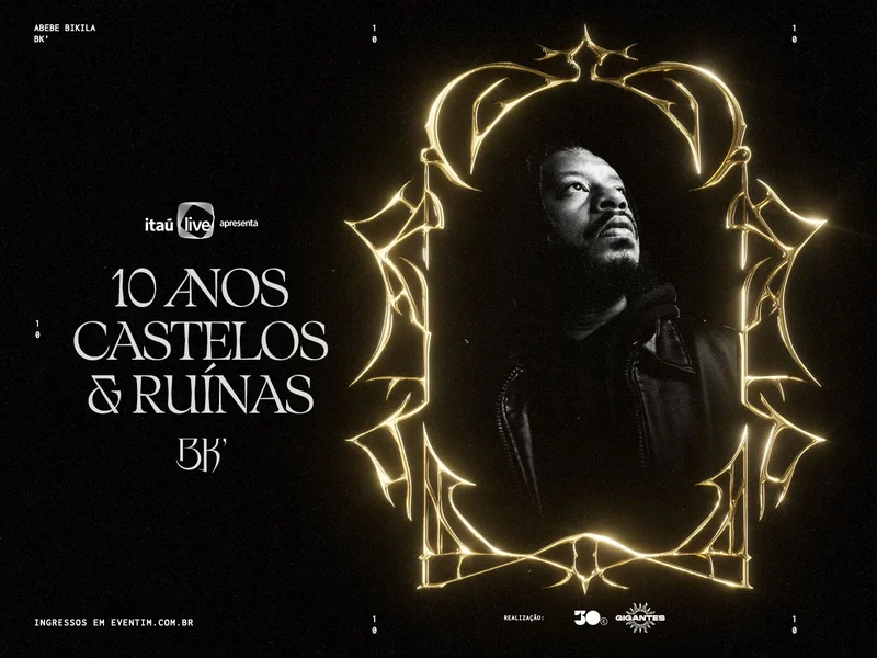 Dez anos depois de apresentar o álbum que redefiniria os rumos do rap brasileiro, o rapper carioca BK’ anuncia que Castelos & Ruínas terá uma apresentação única no Allianz Parque, em São Paulo, no dia 19 de setembro. O espetáculo celebra uma década de seu primeiro álbum e também dez anos de sua carreira solo, em uma data que ficará marcada como a primeira vez que um rapper brasileiro ocupou, sozinho, este estádio — um dos principais palcos da indústria do entretenimento da América Latina. O anúncio sucede uma série de feitos que consolidaram a trajetória do artista, como o ICARUS: A Apoteose, em 2024, quando reuniu mais de 20 mil pessoas, e a expansão deste movimento com a estreia do Festival Gigantes, em 2025. Agora, BK’ leva essa construção a uma nova escala. O show é realizado pela 30e, maior companhia brasileira de entretenimento ao vivo, e apresentado pelo Itaú Live, plataforma proprietária de música do Itaú Unibanco, e também pelas produtoras 11MM e Gigantes.