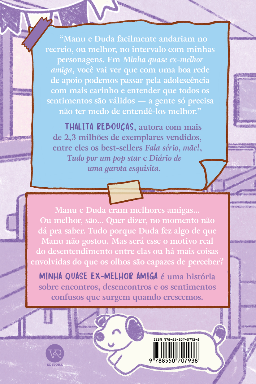 Manu e Duda sempre foram inseparáveis. Daquelas amizades que se constroem nos pequenos rituais do dia a dia, como dividir o lanche no intervalo, trocar confidências e encontrar um espaço seguro uma na outra. No entanto, com a chegada do 6º ano na escola, algo começa a mudar. Em meio a novas dinâmicas, sentimentos difíceis de nomear e silêncios que passam a ocupar o lugar das conversas, a relação entre as duas se transforma. É nesse território sensível de transição da infância para a adolescência que acontece a narrativa de Minha (quase) ex-melhor amiga, lançamento de Rebeca Kim.