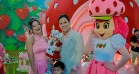 Influenciadora Rayssa Buq celebra 1º ano de sua filha Olívia, com festa temática da Moranguinho