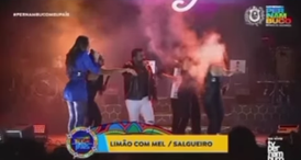 Backing vocal da banda Limão com Mel tem cabelo incendiado por jato de fogo durante show em Pernambuco