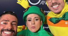 Cauã Reymond posa com Fábio Porchat e Tatá Werneck após piadas com bastidores de 'Vale Tudo'