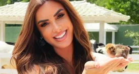 Nicole Bahls batiza peru com nome de Juliano Floss e diverte seguidores